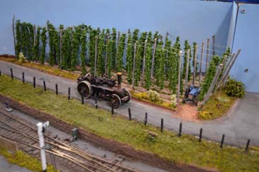 This layout is a small Southern branch terminus loosely based on aspects of the Hawkhurst Branch Line and the Kent & East Sussex Railway, with a goods and engine serving facilities. It was known as a hop-pickers line, so the layout contains a small oast house and part of a hopfield. Trains include hop picking specials that used to bring the pickers down to Kent from London for the annual hop picking season, which for many people was their annual holiday and enabled them to earn some money. The layout can be run on either DCC or DC but not together at once.