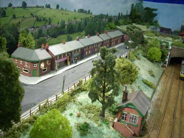 The layout comprises of a four track main line in a cutting passing a signal box between two tunnel entrances. From the layout's point of view, the name Adams Row comes from the area, which can be any rural location in England, where the housing and amenities were built for the workers of the Adams Brothers' Explosives factory, which is on the right of the set-up. It is now in a run-down state, but the housing is still there.